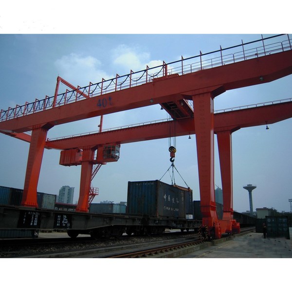 龍門吊是一種橋式起重機,其金屬結構像門形框架,承載主梁下安裝兩條支腳,可以直接在地面的軌道上行走,主梁兩端可以具有外伸懸臂梁。龍門吊具有場地利用率高、作業(yè)范圍大、適應面廣、通用性強等特點,在港口貨場得到廣泛使用。