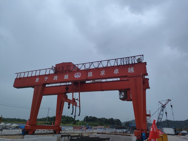 2. 橋梁建設(shè):在橋梁建設(shè)領(lǐng)域,門式起重機主要用于吊裝和拼裝大型橋梁構(gòu)件。這些起重機能夠?qū)⒅剡_數(shù)十噸甚至數(shù)百噸的橋梁組件提升到所需的高度和位置,并進行精確的拼裝。在橋梁施工過程中,門式起重機還被用于搬運和吊裝各種施工材料和設(shè)備,為橋梁建設(shè)提供必要的支持。