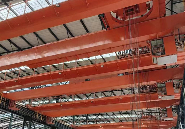 - 結(jié)構(gòu):兩端坐落在高大的水泥柱或者金屬支架上,形狀似橋。橋式起重機(jī)的橋架沿鋪設(shè)在兩側(cè)高架上的軌道縱向運(yùn)行,可以充分利用橋架下面的空間吊運(yùn)物料,不受地面設(shè)備的阻礙。