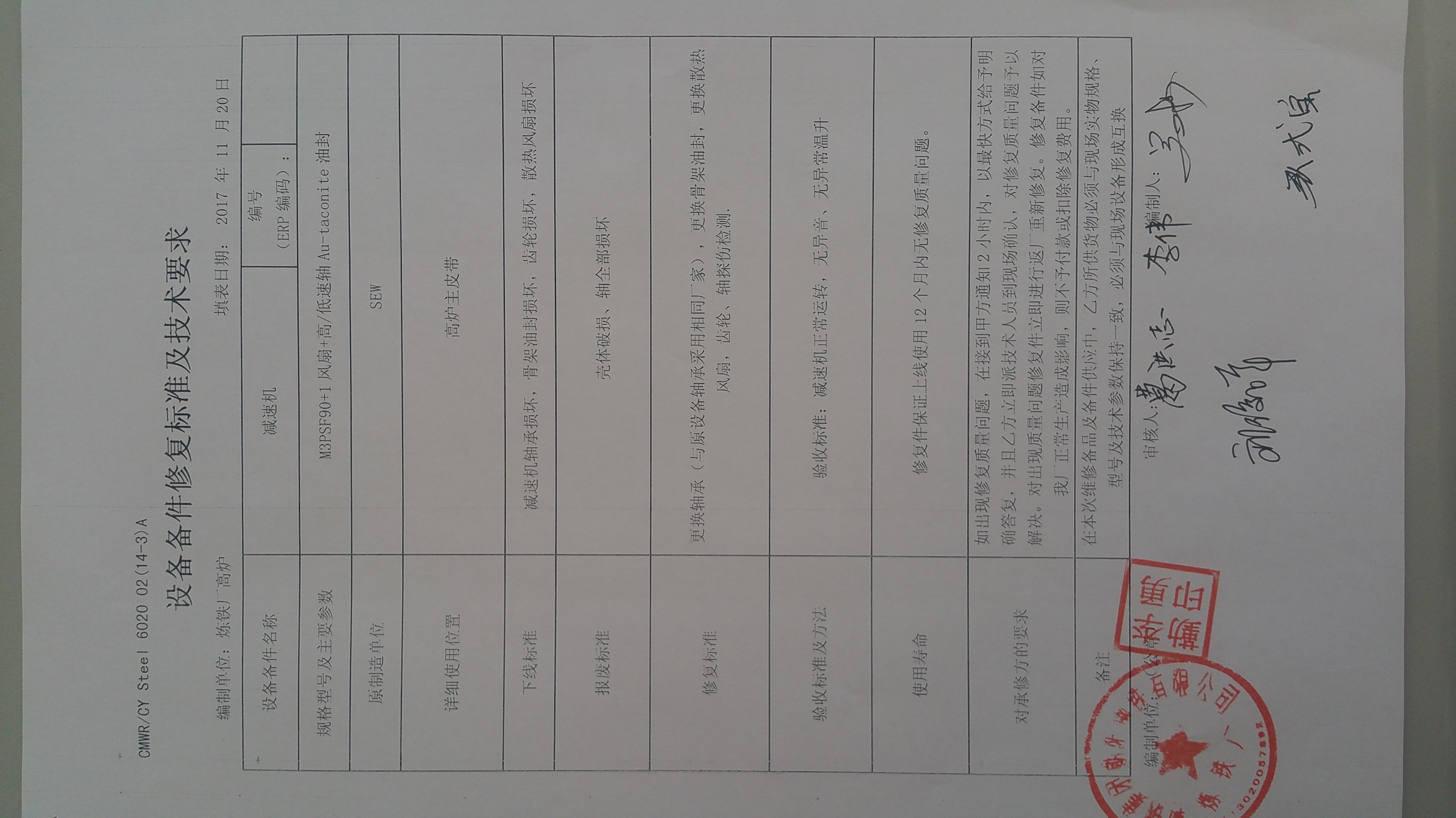 2.項(xiàng)目名稱(chēng):高爐主皮帶減速機(jī)修復(fù)(朝陽(yáng))