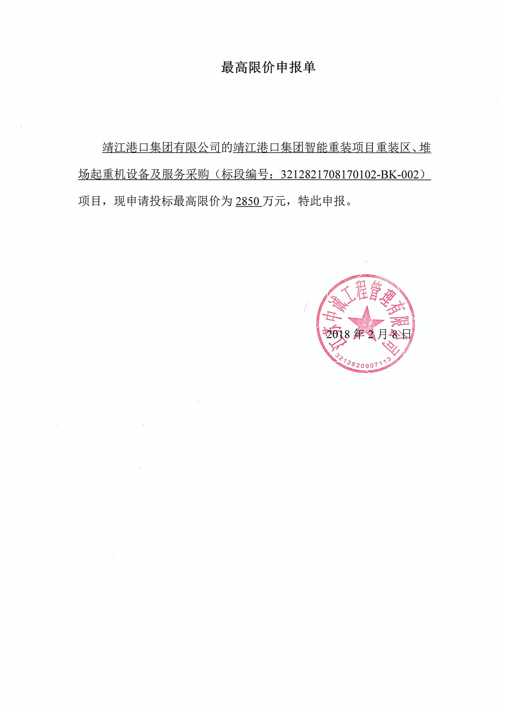靖江港口集團(tuán)有限公司智能重裝項(xiàng)目的最高限價(jià)公示