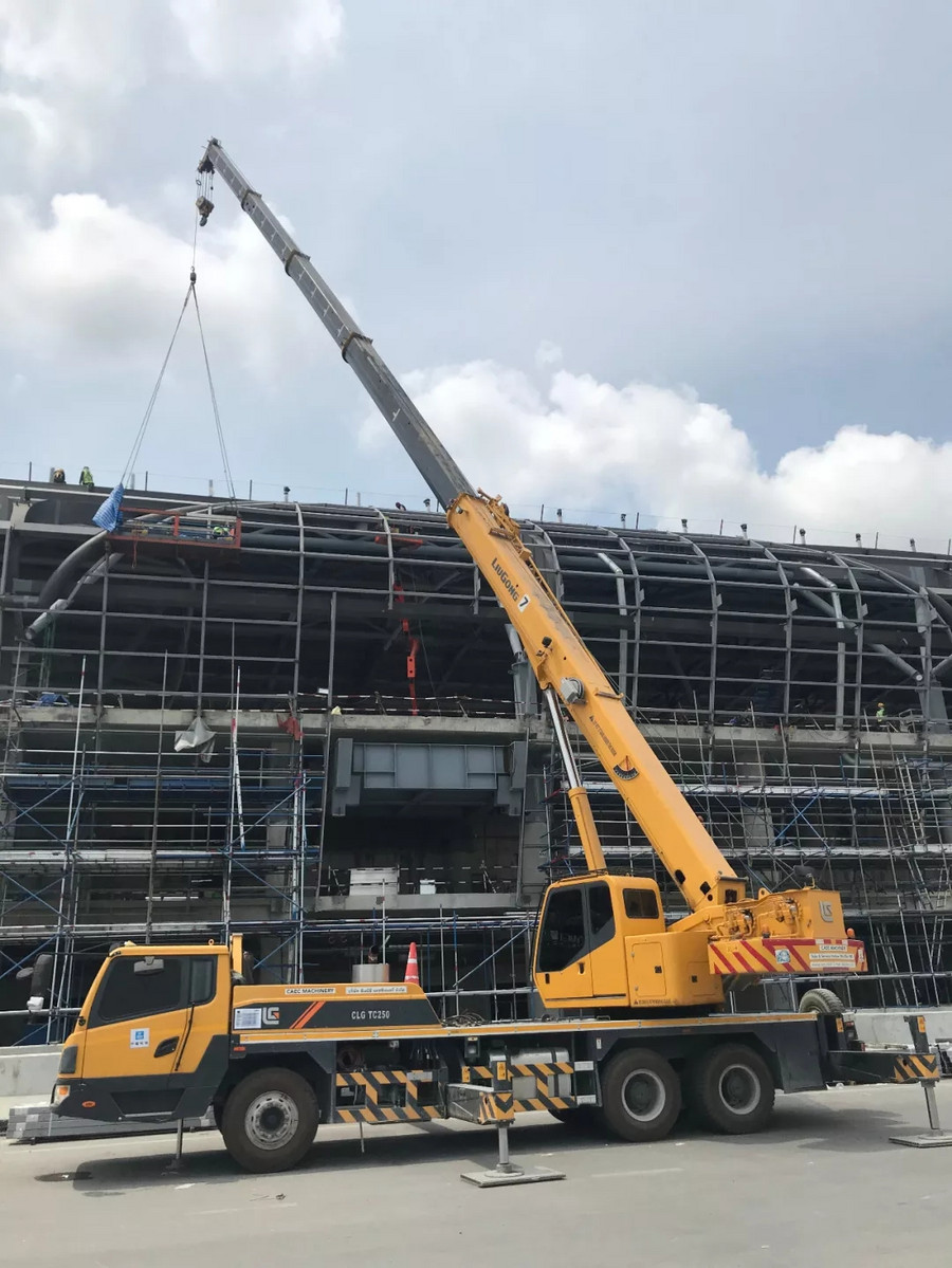 中國建筑集團有限公司作為中國建設(shè)企業(yè)的代表,對施工設(shè)備的要求極為嚴格,其多年來,一直與柳工保持著良好的合作關(guān)系,在多項大型工程中強強聯(lián)合。2016年,柳工TC250A4汽車起重機從眾多設(shè)備中脫穎而出,成功跟隨中國建筑投入到素萬那普機場2期工程——機場T2航站樓的建設(shè)中來,主要承擔吊裝預(yù)制板和候機樓地板鋪設(shè)工作。在高強度,高負荷的運轉(zhuǎn)下,柳工起重機憑借卓越的性能,超高的施工效率,零故障得到客戶的高度贊揚,始終是該項目施工的吊裝主力。
