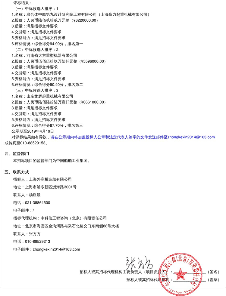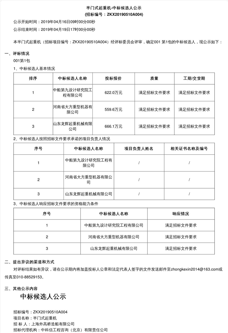 半門(mén)式起重機(jī)-中標(biāo)候選人公示