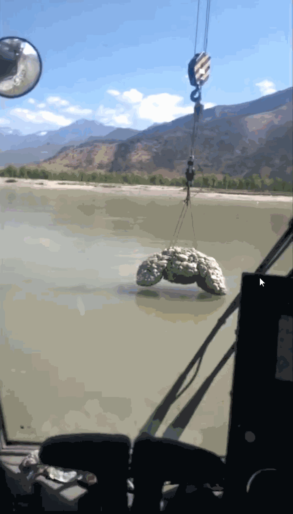 參與建設(shè)的徐工履帶起重機(jī)主要承擔(dān)網(wǎng)兜拋石作業(yè),需要將用鋼絲網(wǎng)打包好的石塊吊至河床表面,進(jìn)行水下拋投工作。每次吊重約5噸,每3-5分鐘進(jìn)行一次拋石作業(yè),拋石工程總量約22.37萬(wàn)立方米。對(duì)于履帶起重機(jī)來(lái)說(shuō),這樣連續(xù)性、高頻率的作業(yè),對(duì)于產(chǎn)品的性能絕對(duì)是一場(chǎng)嚴(yán)峻的考驗(yàn)。徐工履帶起重機(jī)憑借產(chǎn)品超高作業(yè)能力,高效穩(wěn)定的性能,得到了施工方的一致贊許。