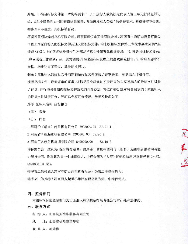 移動版:防爆雙梁吊鉤橋式起重機采購項目中標(biāo)候選人公示