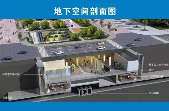 地下三層綜合環(huán)廊工程地下空間規(guī)劃的以綜合管廊、公共交通環(huán)廊和商業(yè)設(shè)施為主,該工程使整個(gè)中央文化區(qū)地面真正形成“無(wú)車區(qū)”,區(qū)域內(nèi)人車分流,屆時(shí),機(jī)動(dòng)車全部通過(guò)地下交通系統(tǒng)運(yùn)行。