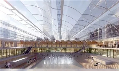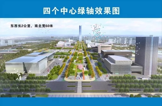 同時(shí)地面規(guī)劃則是綠軸廣場(chǎng),東西長(zhǎng)2公里,南北寬60米。建筑群以這條綠軸為界分布,這里將會(huì)形成一條縱向的“城市綠軸”畫(huà)卷。