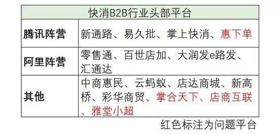 騰訊投資了惠下單和易久批,京東有新通路,去年戰(zhàn)略入股了掌合天下母公司供銷大集,美團(tuán)除了投資易久批之外,旗下產(chǎn)業(yè)基金龍珠資本還投資了掌上快銷。