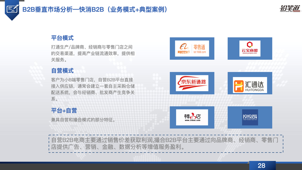 B2B電商在過去幾年平臺交易數(shù)據(jù)的積累中,逐步拓展出更具商業(yè)價值的業(yè)務(wù)模式,傳統(tǒng)的信息服務(wù)模式并不能滿足B端商戶愈加多元化的服務(wù)需求,以數(shù)據(jù)賦能小B端商戶更能增強客戶粘性,提升復(fù)購率;完善供應(yīng)鏈上各個環(huán)節(jié)上的增值服務(wù),拓展盈利模式,形成更高的行業(yè)壁壘。