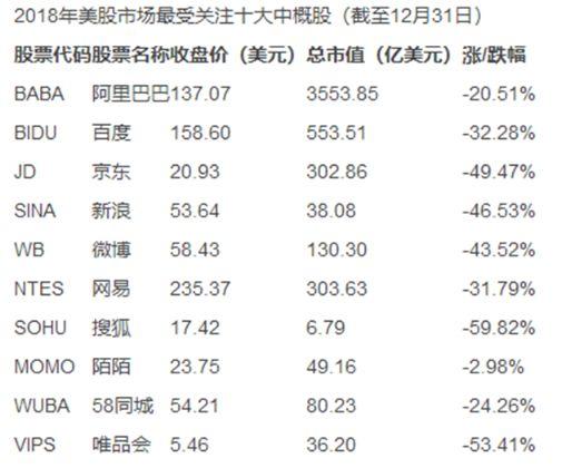 請(qǐng)輸入香港尊嘉證券:2018年美股市場(chǎng)十大中概股漲跌統(tǒng)計(jì)