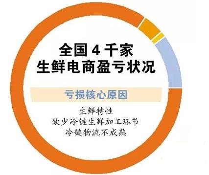 據(jù)中國電子商務研究中心發(fā)布的一組數(shù)據(jù)顯示:生鮮電商 4000 多家入局者中,4%持平,88%虧損,且剩下的7%是巨額虧損,最終只有1%實現(xiàn)了盈利。而據(jù)另一組公開數(shù)據(jù)顯示,2018年我國生鮮市場交易規(guī)模達到4萬億元,其中生鮮電商行業(yè)市場交易規(guī)模達到2103.2億元,較2017年(1402.8億元)增長49.93%。也就是說,交易規(guī)模大、被稱為最后一片電商藍海的生鮮電商,卻長期飽受1%的低盈利概率之痛。