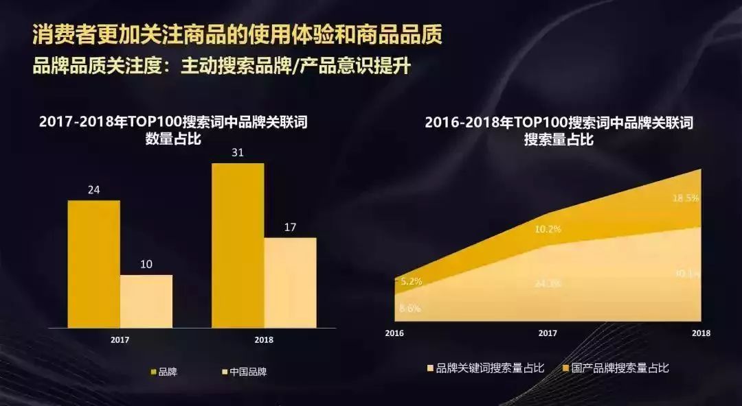 從中經(jīng)社經(jīng)濟(jì)智庫(kù)、中傳-京東大數(shù)據(jù)聯(lián)合實(shí)驗(yàn)室聯(lián)合發(fā)布《2019“新國(guó)貨”消費(fèi)趨勢(shì)報(bào)告》中可以看到近年人們對(duì)于品牌尤其中國(guó)品牌的關(guān)聯(lián)詞搜索占比大幅攀升,新消費(fèi)力量的品牌意識(shí)已經(jīng)覺醒。