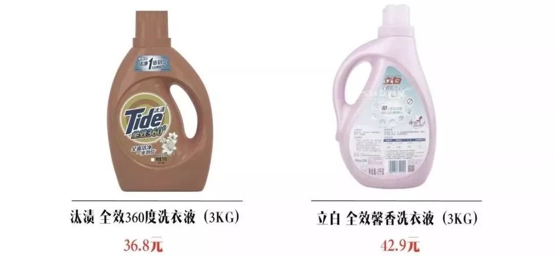 首先是洗衣粉,作為全世界第一代洗衣粉生產(chǎn)商、寶潔旗下品牌,汰漬賣36.8元,而作為國(guó)產(chǎn)品牌的立白賣42.9元,并于2017年就在銷量上超過了汰漬。