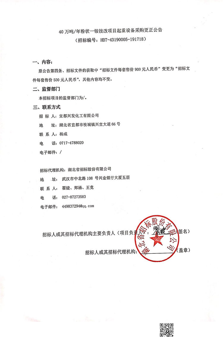 移動版:40萬噸/年粉狀一銨技改項目起重設(shè)備采購更正公告