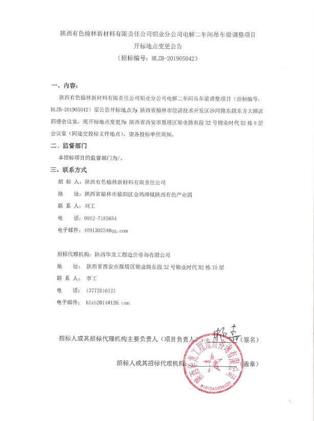 陜西有色榆林新材料有限責(zé)任公司鋁業(yè)分公司電解二車間吊車梁調(diào)整項(xiàng)目 開標(biāo)地點(diǎn)變更公告
