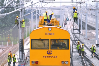 全長(zhǎng)818公里的鄭(州)萬(wàn)(州)高鐵已全面進(jìn)入靜態(tài)驗(yàn)收階段。由中鐵電氣化局集團(tuán)承建的鄭萬(wàn)鐵路河南段“四電”系統(tǒng)集成工程,目前正進(jìn)行各種設(shè)備的精調(diào),參建人員冒著酷暑?yuàn)^戰(zhàn)在施工一線,確保8月份聯(lián)調(diào)聯(lián)試順利進(jìn)行。圖為中鐵電氣化施工專用機(jī)械在鄭州南站寺后線路所進(jìn)行精調(diào)施工。