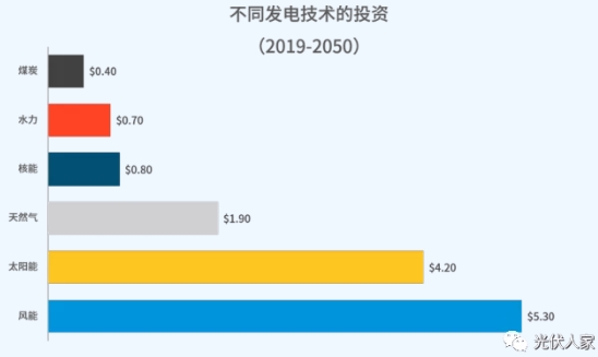 風(fēng)能與太陽能的投資將分別達(dá)到5.3萬億美元和4.2萬億美元