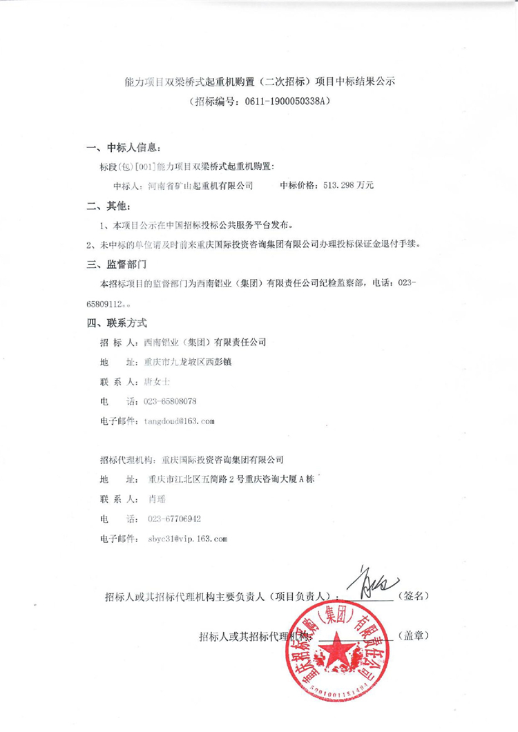 移動版:能力項目雙梁橋式起重機購置(二次招標(biāo))項目中標(biāo)結(jié)果公示