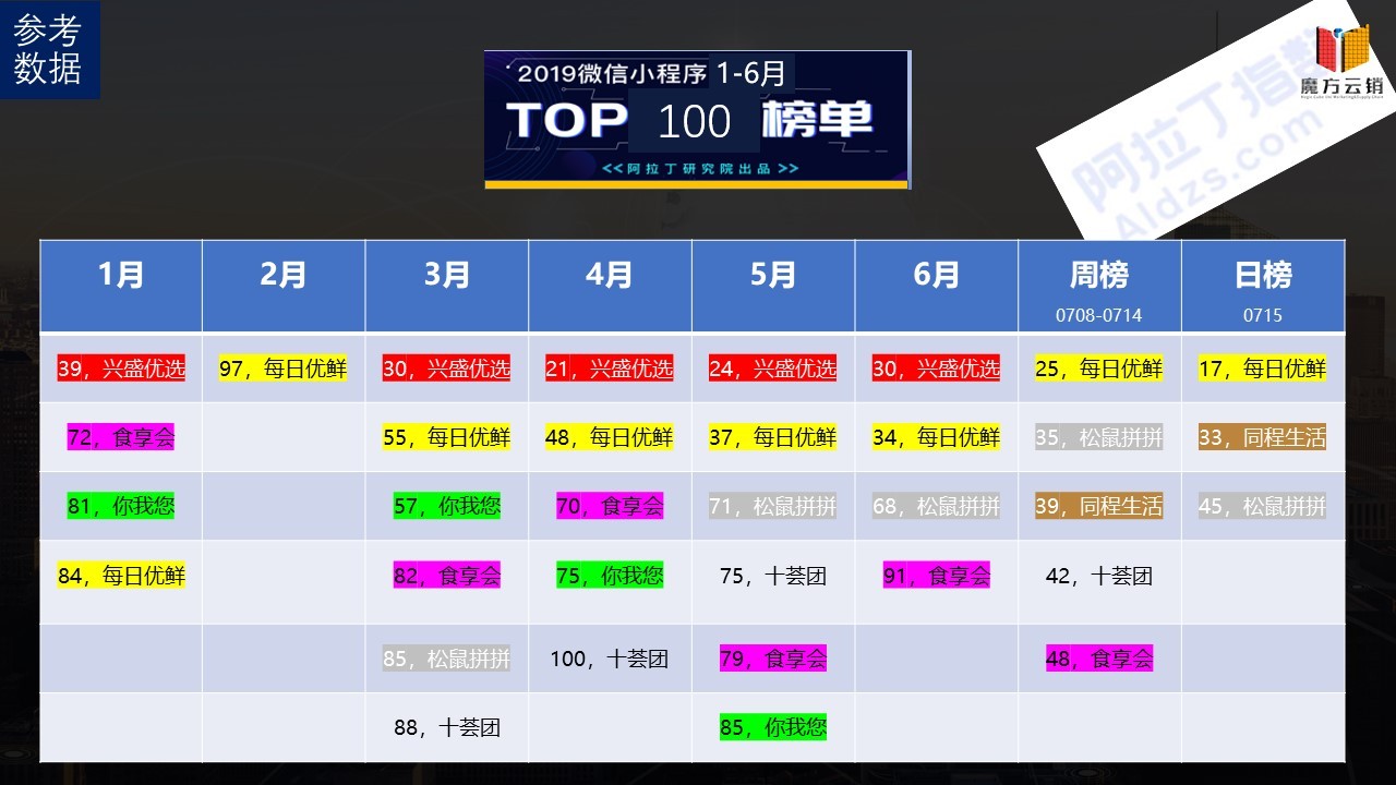 那么目前這次阿拉丁的數(shù)據(jù),大家看1月2月3月4月到5月到6月,不同平臺的排名。