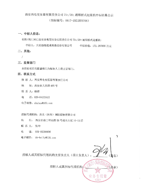 移動(dòng)版:西安西電變壓器有限責(zé)任公司75t/20t通用橋式起重機(jī)中標(biāo)結(jié)果公示