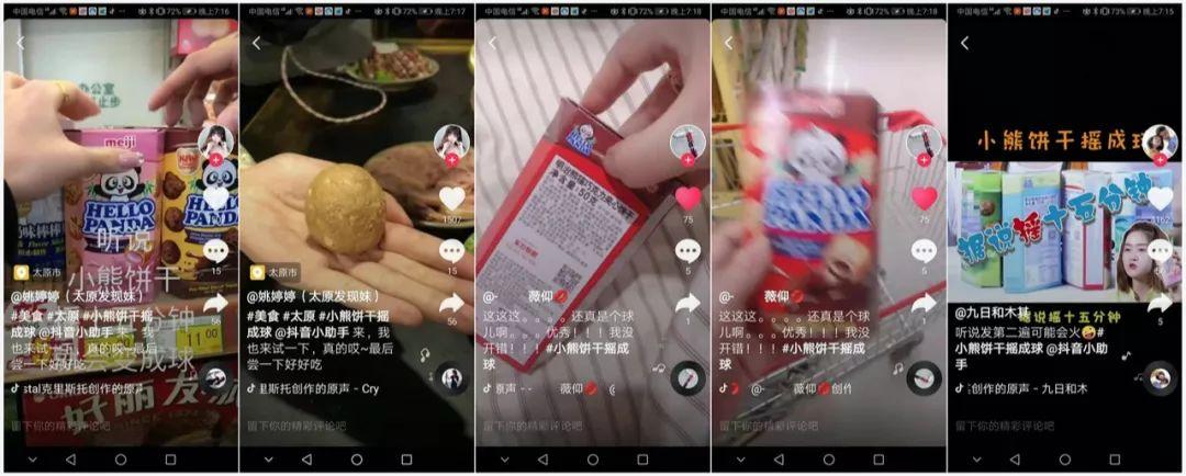 與此同時(shí),抖音話題挑戰(zhàn)賽的出現(xiàn),也讓抖友們有了集體參與的榮譽(yù)感。每一次抖友上傳的“把小熊餅干搖成球”的活動(dòng),無論成功或失敗,都能收到許多贊。這一刻,明治小熊餅干儼然成為了社交工具,它把相同類別的人聚集在了一起。