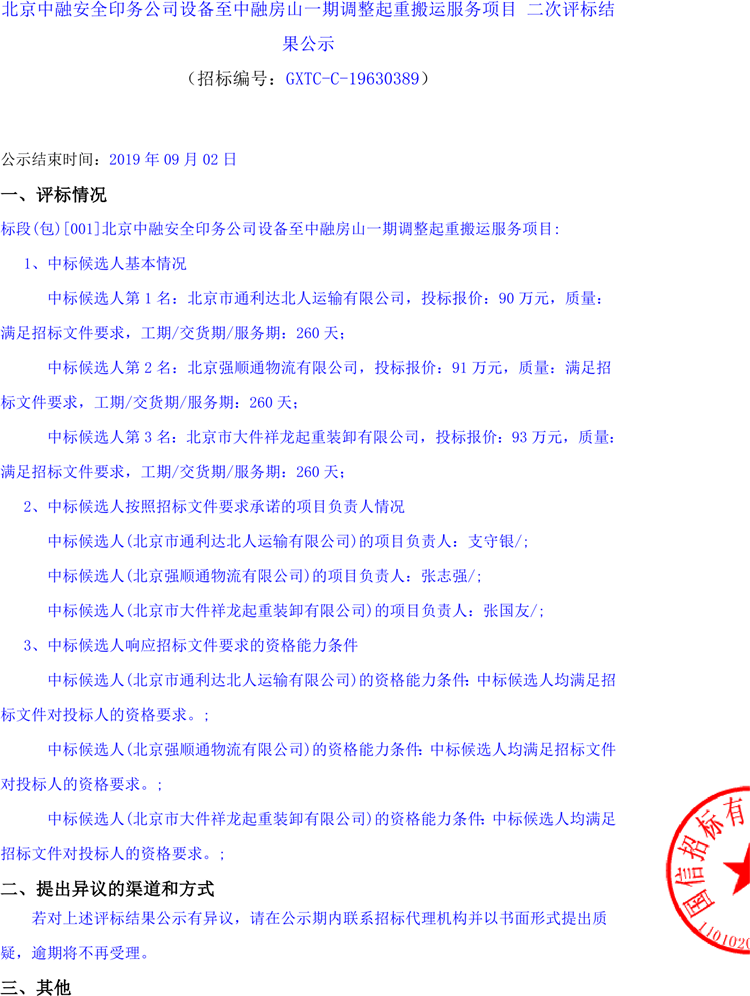 移動(dòng)版:北京中融安全印務(wù)公司設(shè)備至中融房山一期調(diào)整起重搬運(yùn)服務(wù)項(xiàng)目 二次評(píng)標(biāo)結(jié)果公示