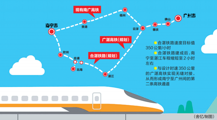 ●合湛鐵路建成后,南寧至湛江車程縮短至2小時左右