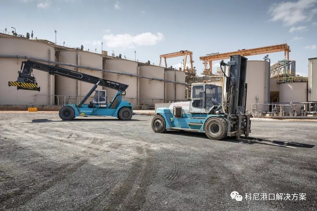 “這家位于泰國(guó)的物流集團(tuán)在現(xiàn)有的整組設(shè)備中新增了兩臺(tái)新型科尼叉車:配有靜壓傳動(dòng)的集裝箱正面吊和雙層空箱堆高機(jī)。”