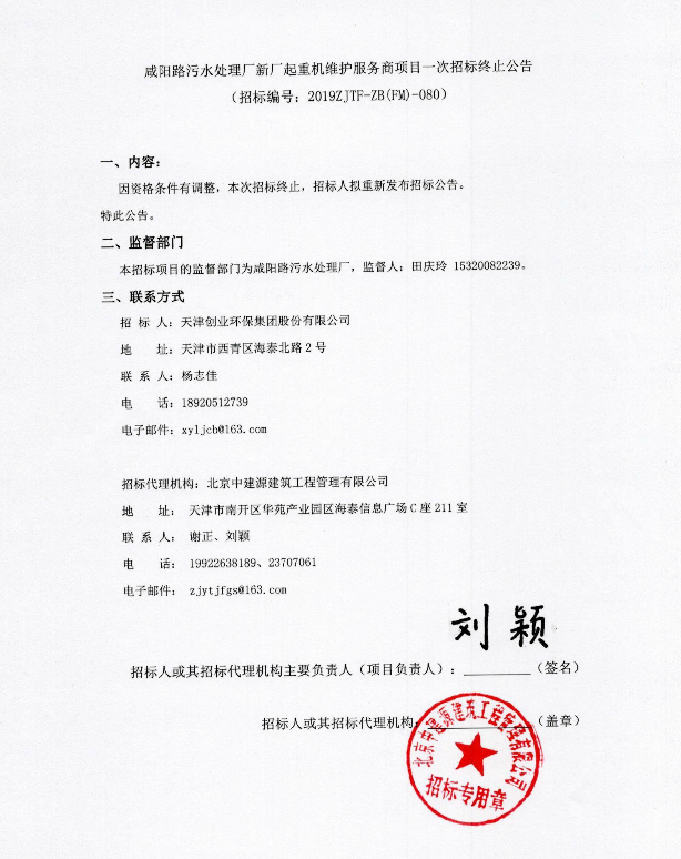 咸陽路污水處理廠新廠起重機(jī)維護(hù)服務(wù)商項(xiàng)目一次招標(biāo)終止