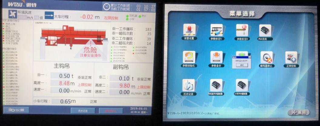 上下小車及大車行程采用計(jì)程輪的方式采集數(shù)據(jù),高度采用多功能行程限位器加編碼器的方式采集高度數(shù)據(jù)。同時(shí)采集其速度等相關(guān)數(shù)據(jù),使操作人員可以通過直觀的數(shù)據(jù)變化觀察其大小車的位置,每個(gè)鉤的高度等相關(guān)數(shù)據(jù),為設(shè)備的安全運(yùn)行提供更加安全的保障。