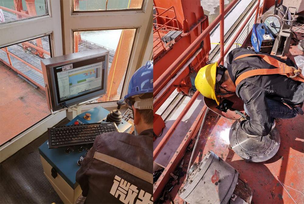 施工過(guò)程中,由于尾水門(mén)機(jī)抓梁不能落到地上,安裝過(guò)程中全程都是高空作業(yè),這無(wú)疑也加大了施工難度。而且,安裝期內(nèi)恰逢當(dāng)?shù)囟嘤晏鞖?,為了不延誤工期,售后工程師們時(shí)常要冒雨施工。雖然過(guò)程中困難較多,但均被一一克服解決,項(xiàng)目有序推進(jìn)。