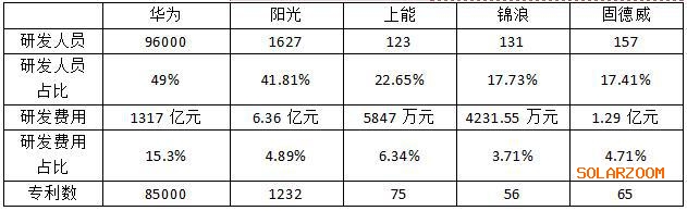需要指出,華為的業(yè)務(wù)領(lǐng)域十分廣泛,在研發(fā)人員數(shù)量、費(fèi)用兩方面超過其他企業(yè)不足為奇。但從研發(fā)人員和費(fèi)用的占比來看,華為能快速成為逆變器龍頭、并連續(xù)5年穩(wěn)坐頭把交椅,還是付出了許多心血的。