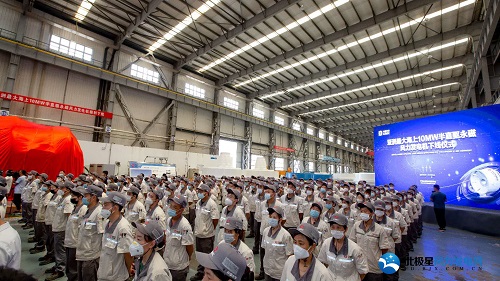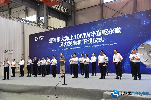 6月3日,由中車永濟(jì)電機(jī)公司自主研制的10MW半直驅(qū)永磁風(fēng)力發(fā)電機(jī)在山東東營(yíng)成功下線。中國(guó)可再生能源學(xué)會(huì)、北京鑒衡認(rèn)證中心、中國(guó)農(nóng)機(jī)協(xié)會(huì)風(fēng)電設(shè)備分會(huì)、明陽(yáng)智慧能源集團(tuán)股份公司等國(guó)內(nèi)風(fēng)電行業(yè)“大咖”,以及山東省東營(yíng)市政府、河口區(qū)政府等領(lǐng)導(dǎo)和嘉賓,與中車永濟(jì)電機(jī)公司山東基地幾百名員工齊聚一堂,共同見(jiàn)證這一精彩時(shí)刻。