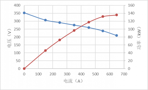 據(jù)了解,作為驥翀氫能第一代電堆產(chǎn)品MH170的升級版,該電堆由370節(jié)單池構(gòu)成,其中雙極板及膜電極等電堆部件均為國產(chǎn);實測功率曲線如圖2所示,裸堆最大輸出體積比功率密度達到4.7kW/L,質(zhì)量比功率密度達到4.0kW/L。