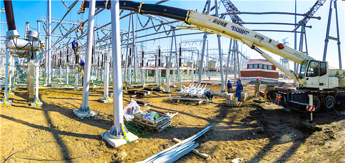 為完善市域骨干網(wǎng)架建設(shè),國網(wǎng)白城供電公司組織人員在“新基建”指定項(xiàng)目甜水500千伏變電站新建甜雙線出口處安裝柱上隔離開關(guān)。據(jù)了解,工程施工建成后將大大提升吉林西部新能源規(guī)模開發(fā)并網(wǎng)需求。 來源: 吉林日報(bào) 石開 攝