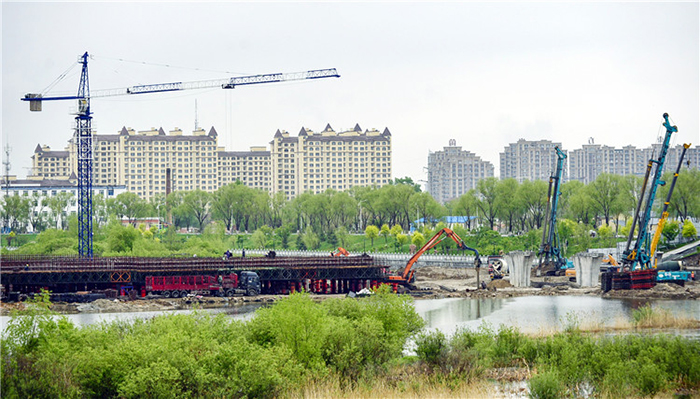 作為梅河口城區(qū)內(nèi)最大的城市基礎(chǔ)設(shè)施建設(shè)工程,梅河口城市濕地觀光帶集防洪、灌溉、園林三位一體。工程總投資6億元,其中水利工程2.2億元,景觀建設(shè)工程3.8億元。圖為施工現(xiàn)場??追?攝
