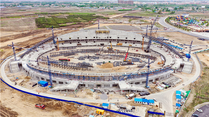 2020年,梅河口市列入全省“三早”行動項(xiàng)目99個,總投資606億元,年度計(jì)劃投資170億元。圖為總投資3億元的梅河口市萬人體育場項(xiàng)目施工現(xiàn)場。趙世闊 攝