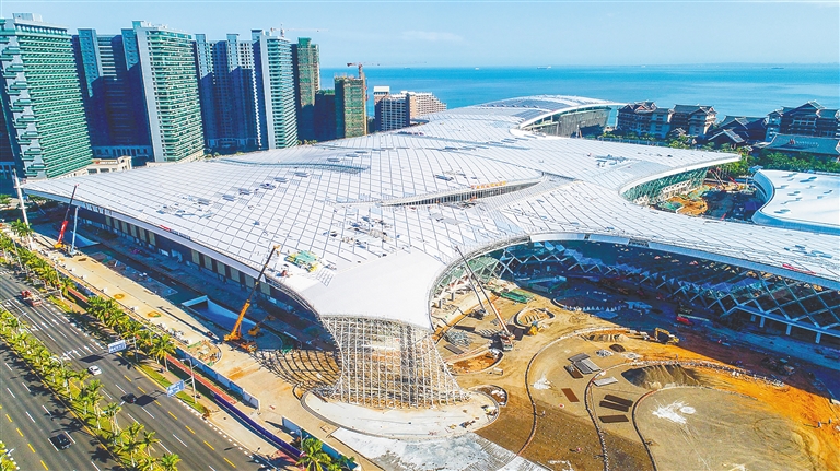 6月12日,航拍正在加緊建設(shè)中的海南國(guó)際會(huì)展中心二期項(xiàng)目。目前,海南國(guó)際會(huì)展中心二期項(xiàng)目外立面幕墻裝飾以及內(nèi)部裝修均已進(jìn)入收尾階段,預(yù)計(jì)6月底全面完工。