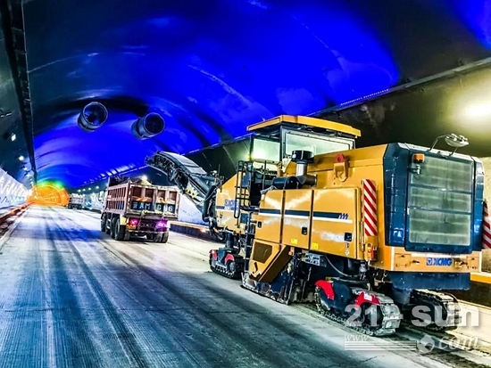 近日,連云港云臺山隧道進行翻修施工,隧道全長3公里為省內(nèi)之最,是聯(lián)通該區(qū)域南北之間通行的重要通道。鑒于隧道施工的安全要求及水泥路面的銑刨能力要求,經(jīng)過綜合考量,施工方最終使用徐工大型銑刨機XM200KⅡ負責本次隧道內(nèi)水泥路面銑刨。