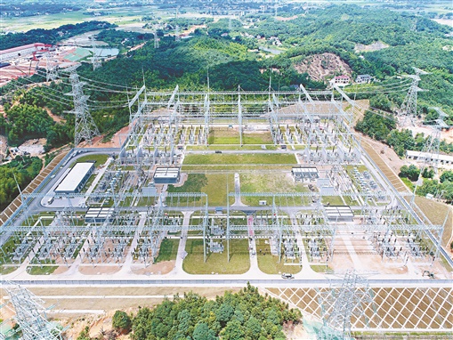 6月15日,長沙市望城區(qū)白箬鋪鎮(zhèn)古山村,我省電網(wǎng)建設(shè)重點項目長沙望城500千伏變電站新建工程進入收尾施工,計劃于本月26日實現(xiàn)220千伏局部投產(chǎn)送電?!碓矗?湖南日報