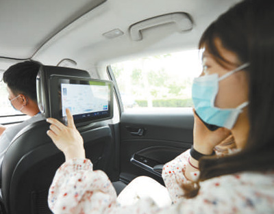 “從外觀看,無人駕駛車與其他車輛并無太大不同,比較明顯的區(qū)別也許就是可以看到車頂?shù)膫鞲衅?。上車之后,我可以看到三塊約A4紙大小的觸摸電子屏,前排一塊,后排兩塊。”張凌曉說。