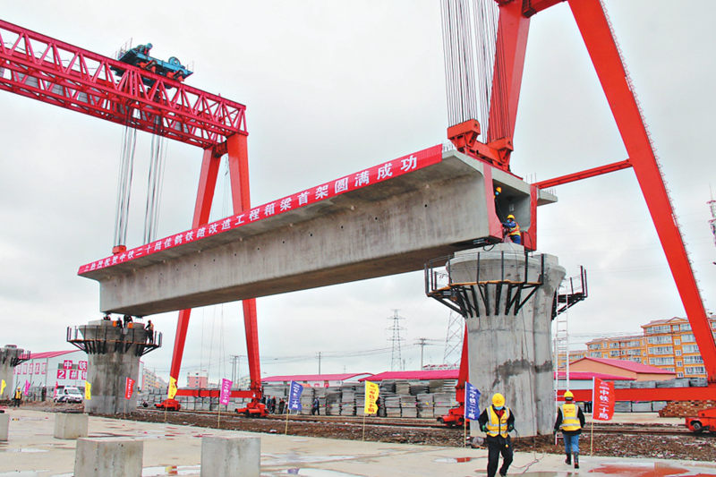 黑龍江:佳鶴鐵路首榀箱梁架設(shè)成功