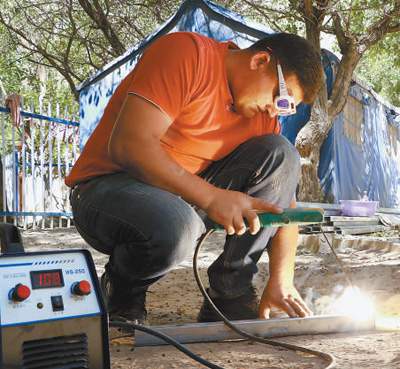 “柴油發(fā)電機(jī)噪聲大,吵得人耳朵疼,現(xiàn)在一插電直接就能開(kāi)工了。”說(shuō)著,阿米爾江拿起堆在地上的鐵皮材料開(kāi)始工作,火花四濺,卻少了以往的噪音和難聞的柴油味。