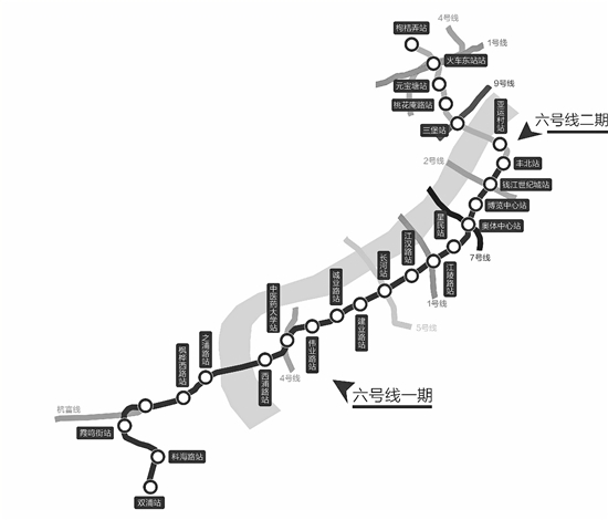 杭州地鐵6號線一期很長一段在錢塘江南岸走,連接了過江的各條地鐵線,可謂江南岸的“換乘王”。