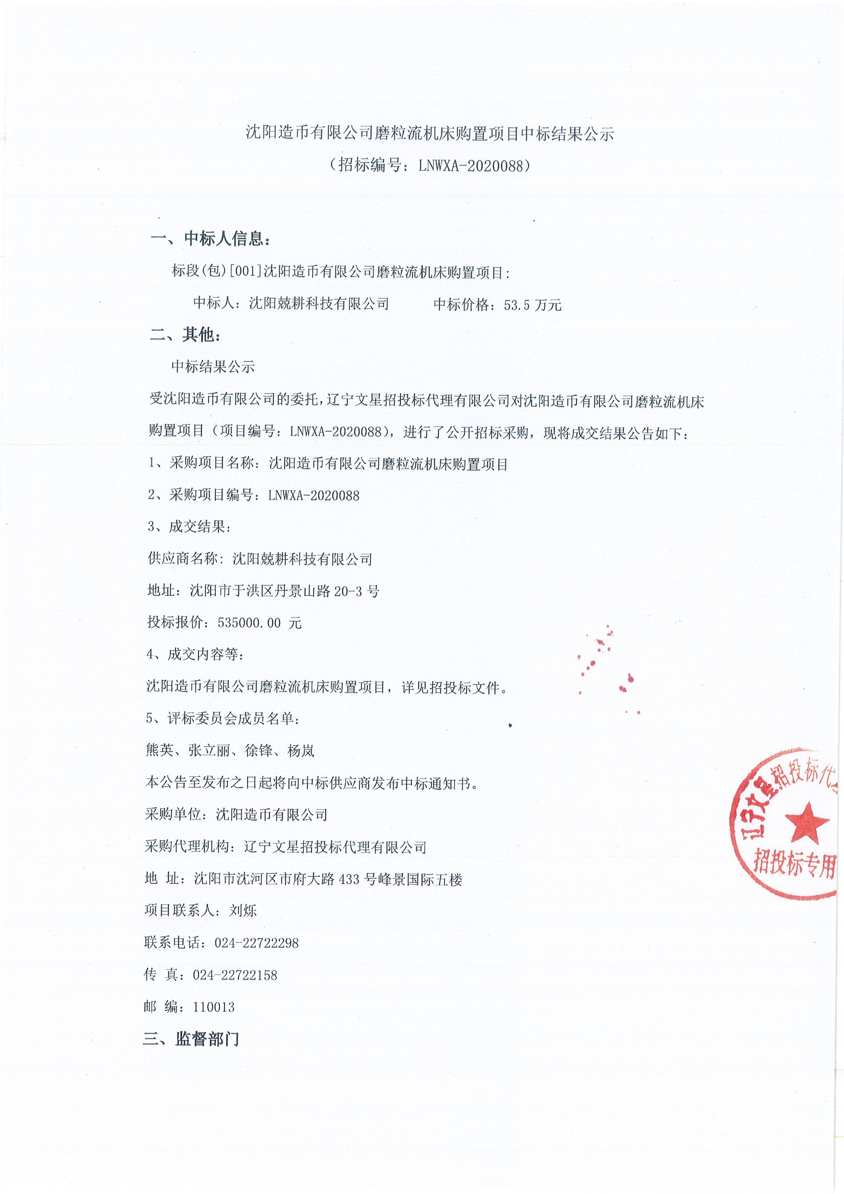 移動版:沈陽造幣有限公司磨粒流機床購置項目中標(biāo)結(jié)果公示