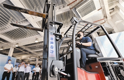 昨天,天津港保稅區(qū)氫能項(xiàng)目簽約大會(huì)暨天津港保稅區(qū)氫能產(chǎn)業(yè)促進(jìn)聯(lián)盟第一屆理事會(huì)在臨港智能裝備產(chǎn)業(yè)園成功舉行。圖為氫能源叉車展示。