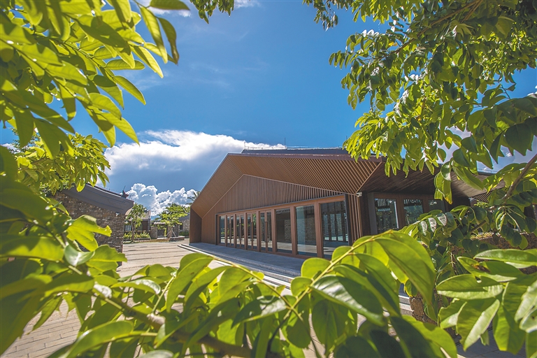 8月22日,博鰲亞洲論壇永久會(huì)址論壇公園呈現(xiàn)嶄新面貌,古樸、靜謐之風(fēng)迎面撲來(lái)。圖為鄉(xiāng)村會(huì)客廳外景。海南日?qǐng)?bào)記者 袁琛 攝