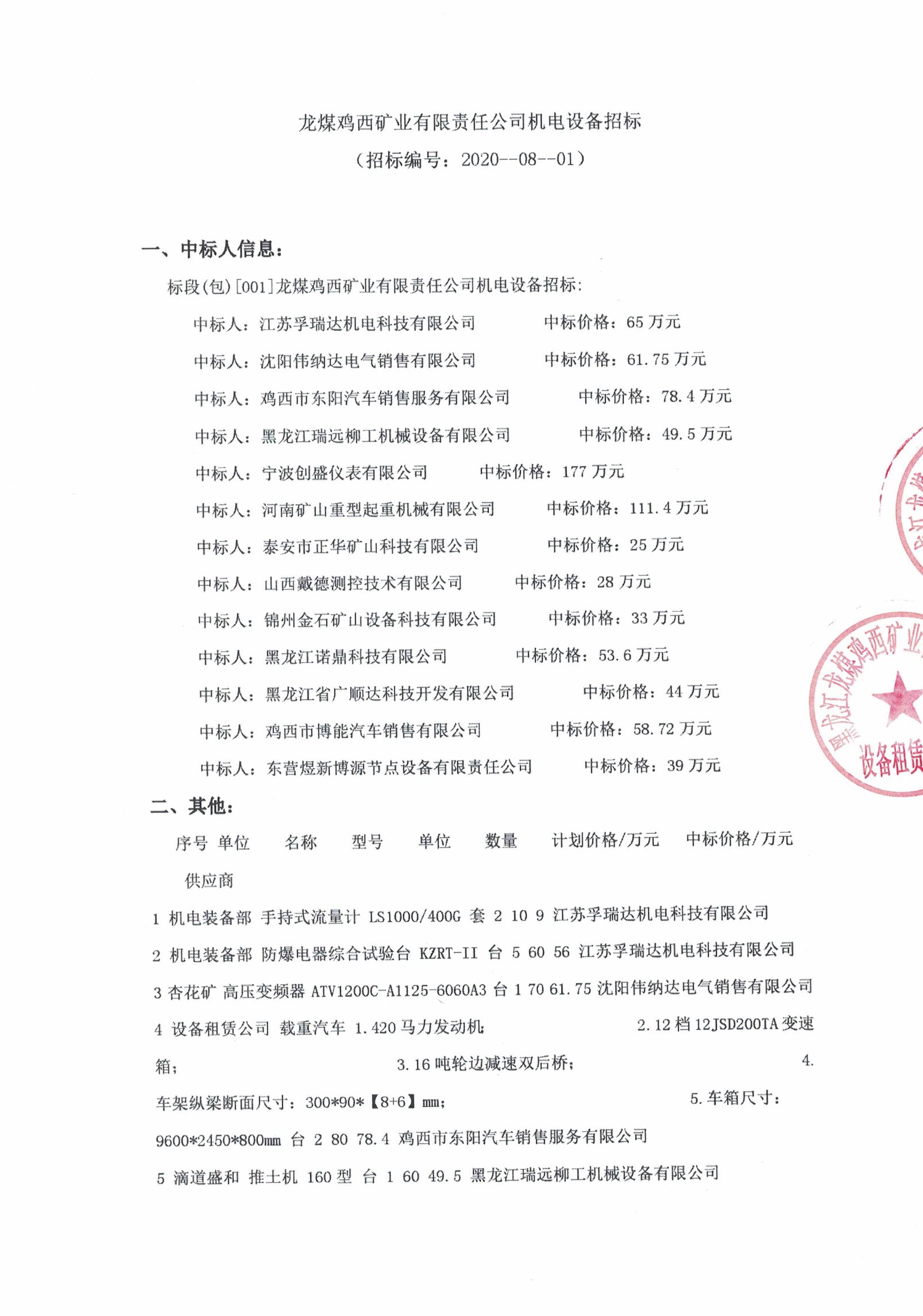 移動版:龍煤雞西礦業(yè)有限責任公司機電設備招標