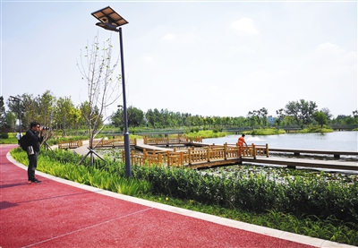 安南濕地環(huán)保主題公園位于南六環(huán)新鳳河邊,將于10月1日正式開園。記者近日來到園中看到,公園內(nèi)有池塘、噴泉、棧橋、健身步道以及各類花草樹木,不少居民在園內(nèi)散步,這座濕地公園儼然成為頗受歡迎的休閑場所。