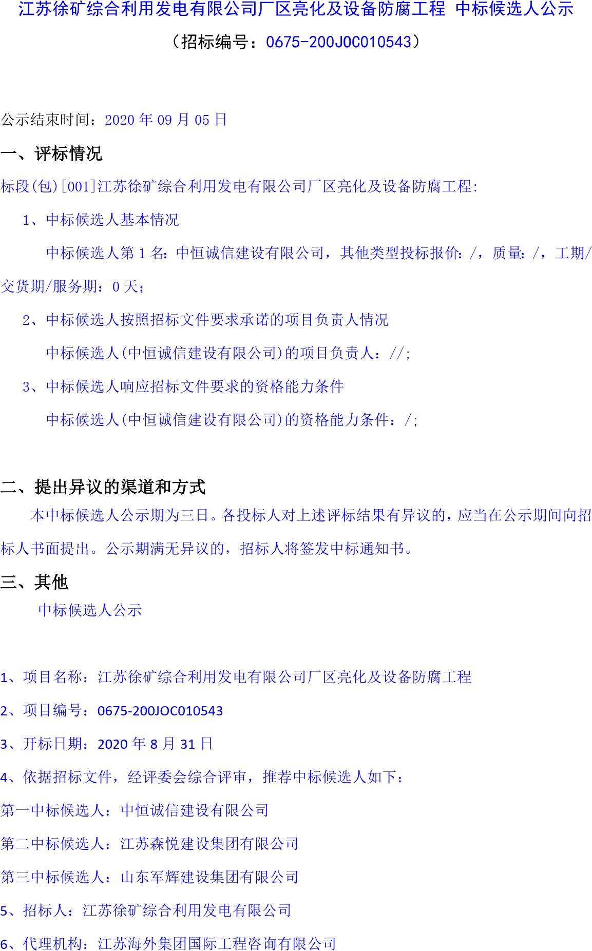 移動版:江蘇徐礦綜合利用發(fā)電有限公司廠區(qū)亮化及設(shè)備防腐工程中標(biāo)候選人公示